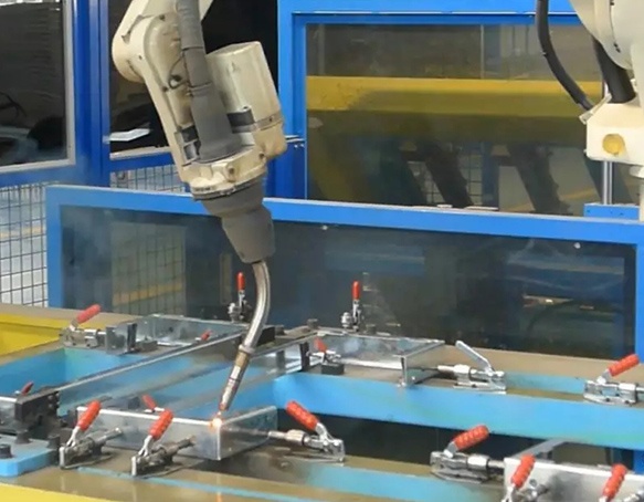 3、采用雙工位布局,可以有效的防止在工件拆卸時(shí)機(jī)器人的空置時(shí)間,效率較之前提高了3倍。工件焊縫均勻,產(chǎn)品補(bǔ)焊率低,產(chǎn)品質(zhì)量整體提升。